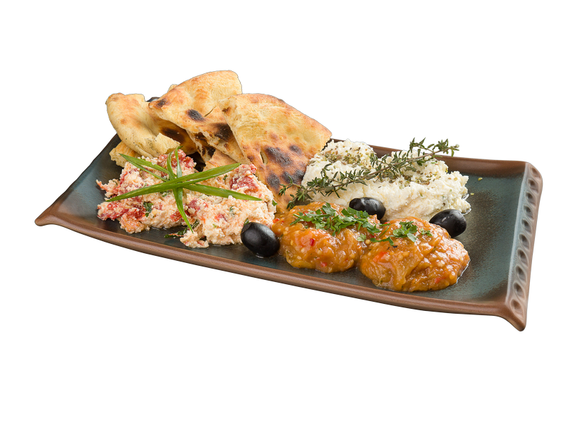 / пикантна родопска разядка със сирене и чесън, домашно кьопоолу и разядка - печени чушки със сирене и магданоз, поднесени с домашна пърленка /